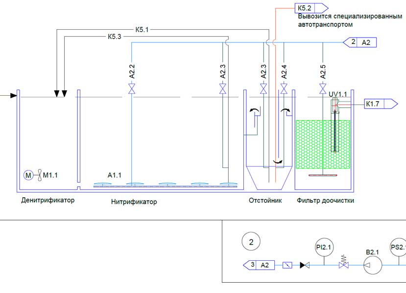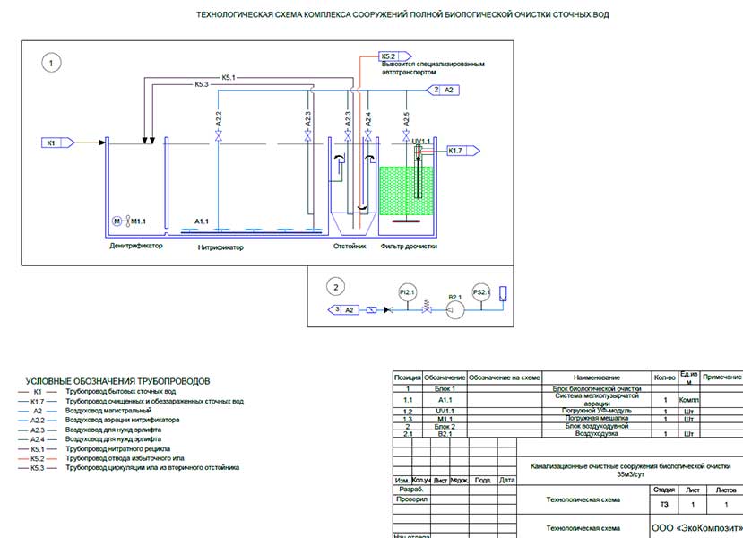 Технологическая схема комплекса сооружения полной биологической очистки сточных вод.